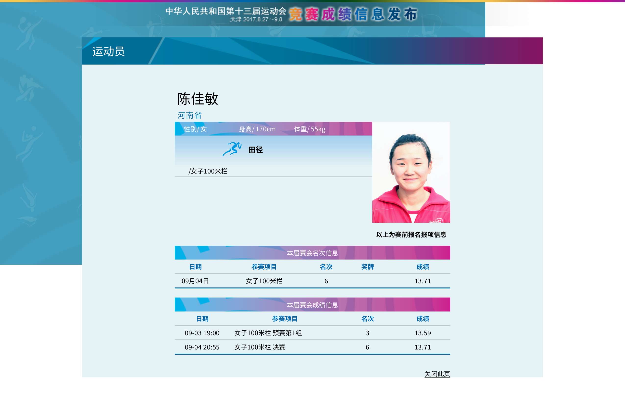 陈佳敏,1996年5月1日出生于河南省焦作市修武县,中国女子田径运动员,效力于河南省田径队。